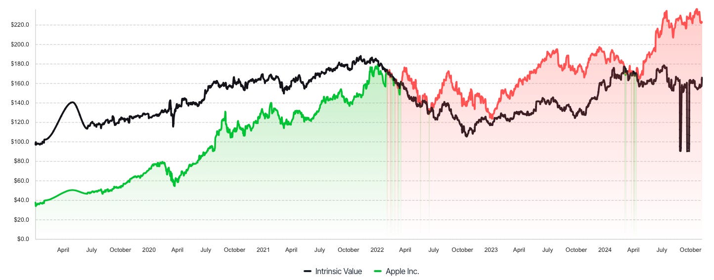 So is Apple overvalued or not? Currently Apple trades at 226 USD. However, intrinsic value of Apple is 166 USD.